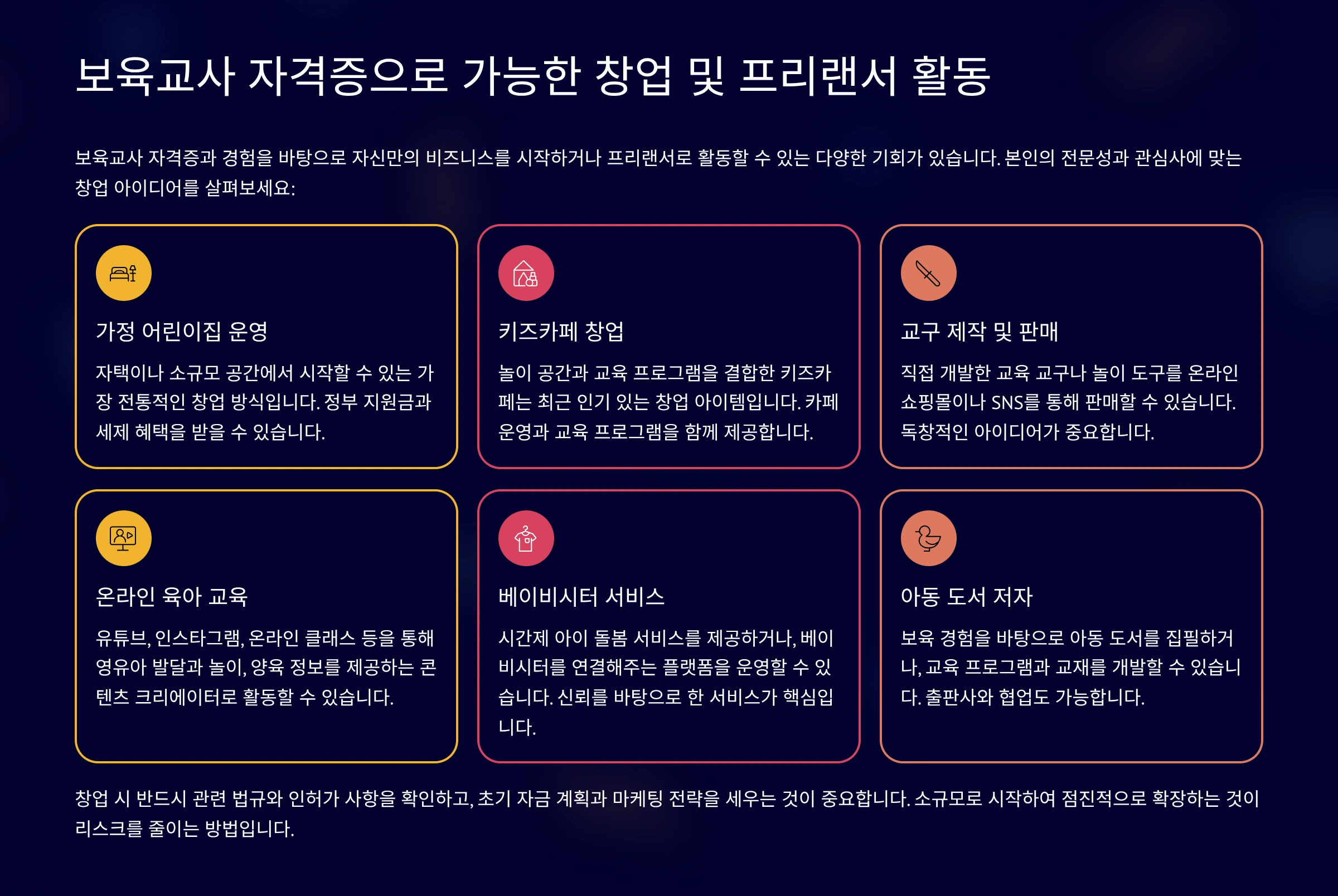 보육교사 자격증으로 가능한 창업 및 프리랜서 활동 🚀