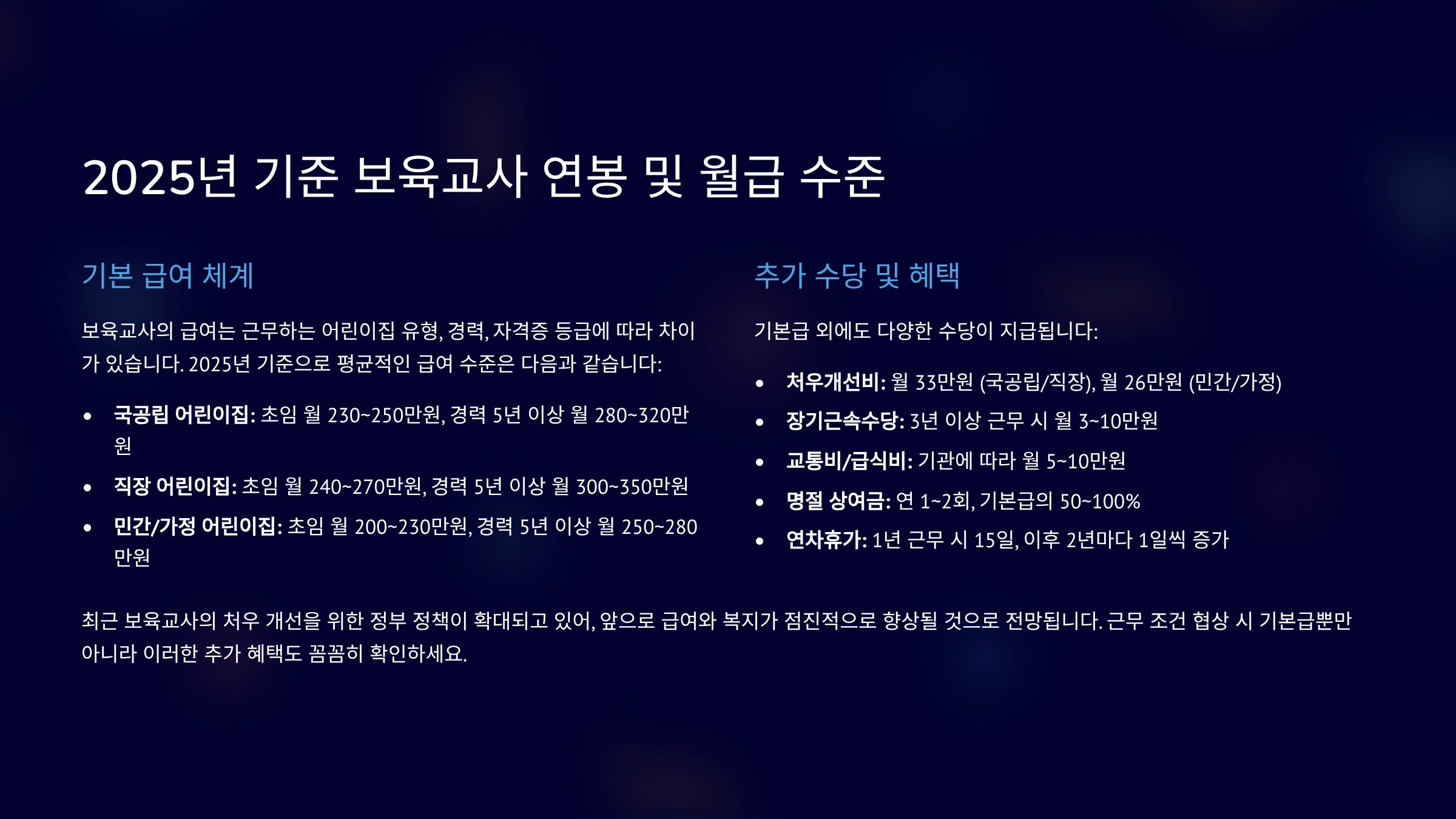 2025년 기준 보육교사 연봉 및 월급 수준 💰