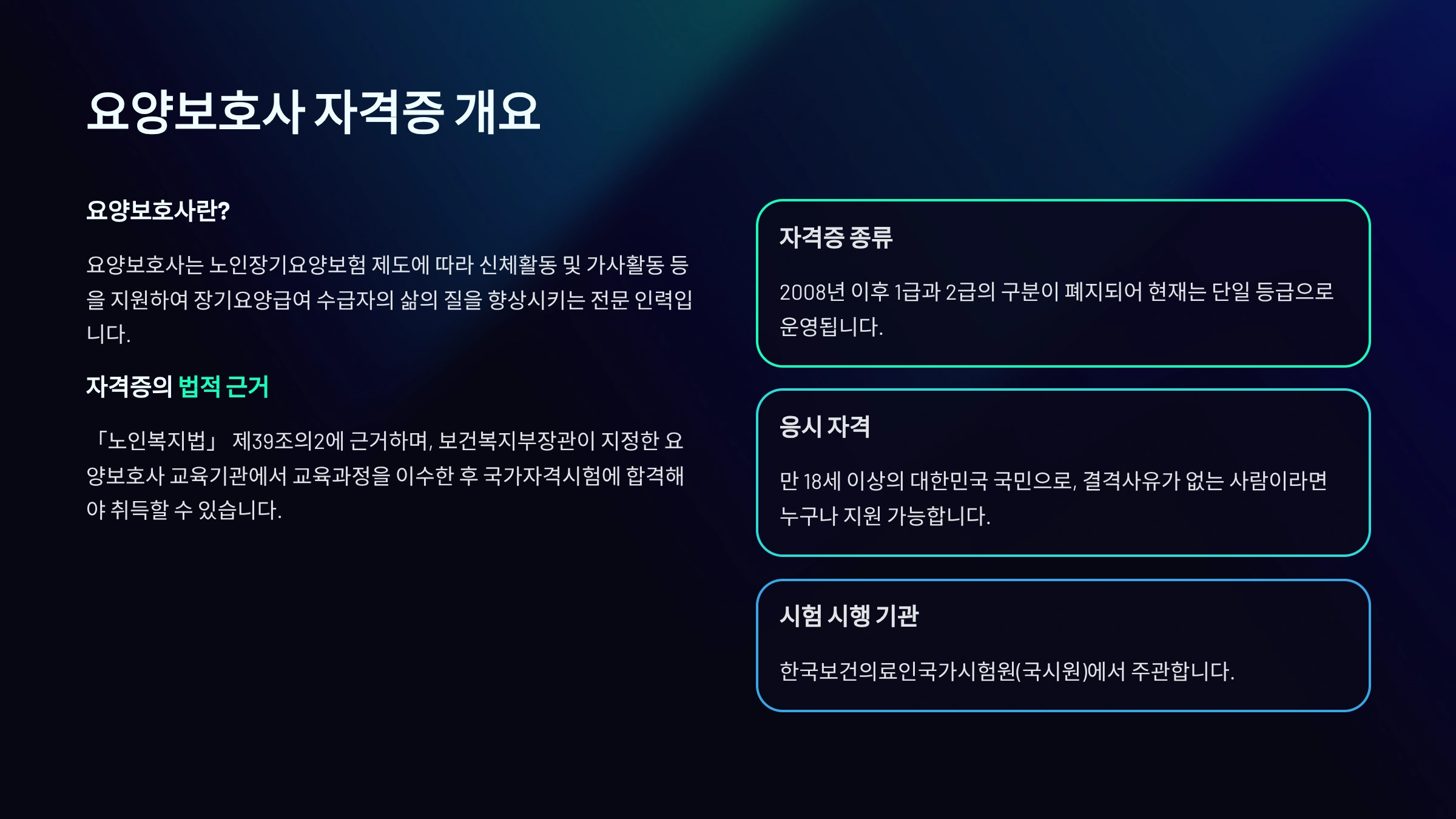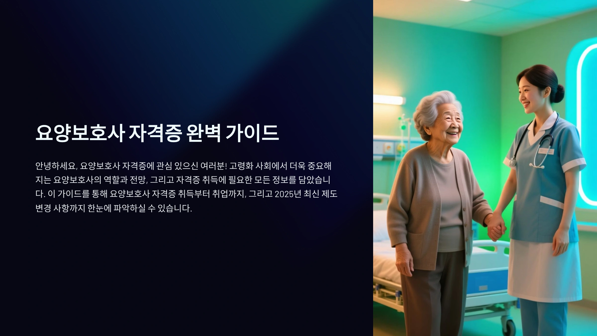 요양보호사 자격증은 고령화 사회에서 반드시 필요한 국가자격증이에요. 치매, 거동 불편, 일상생활이 어려운 어르신들을 직접 돌보고 지원하는 전문 인력을 양성하는 제도랍니다. 특히 2025년 현재 요양보호사 수요는 빠르게 늘고 있어서 취업 안정성과 전망이 좋은 자격증으로 꼽혀요.