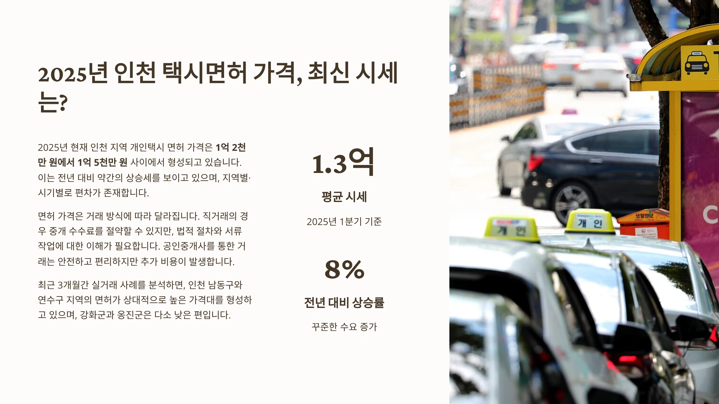 1. 2025년 인천 택시면허 가격, 최신 시세는? 💡
