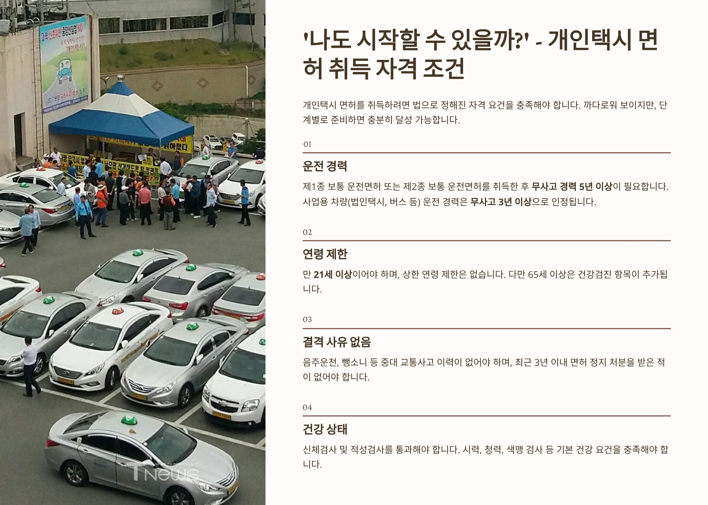 3. '나도 시작할 수 있을까?' - 개인택시 면허 취득 자격 조건 ✅