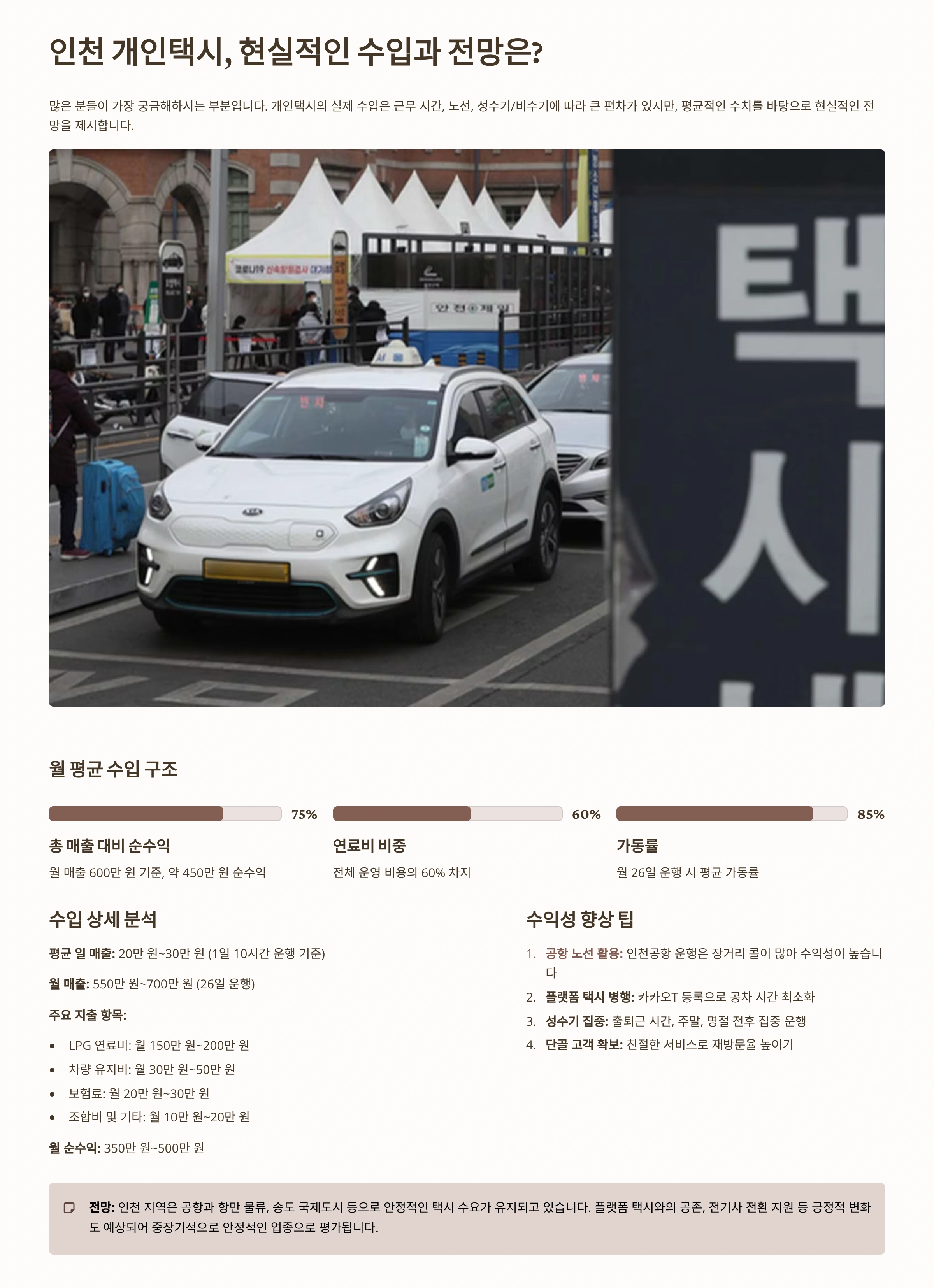 6. 인천 개인택시, 현실적인 수입과 전망은? 📊