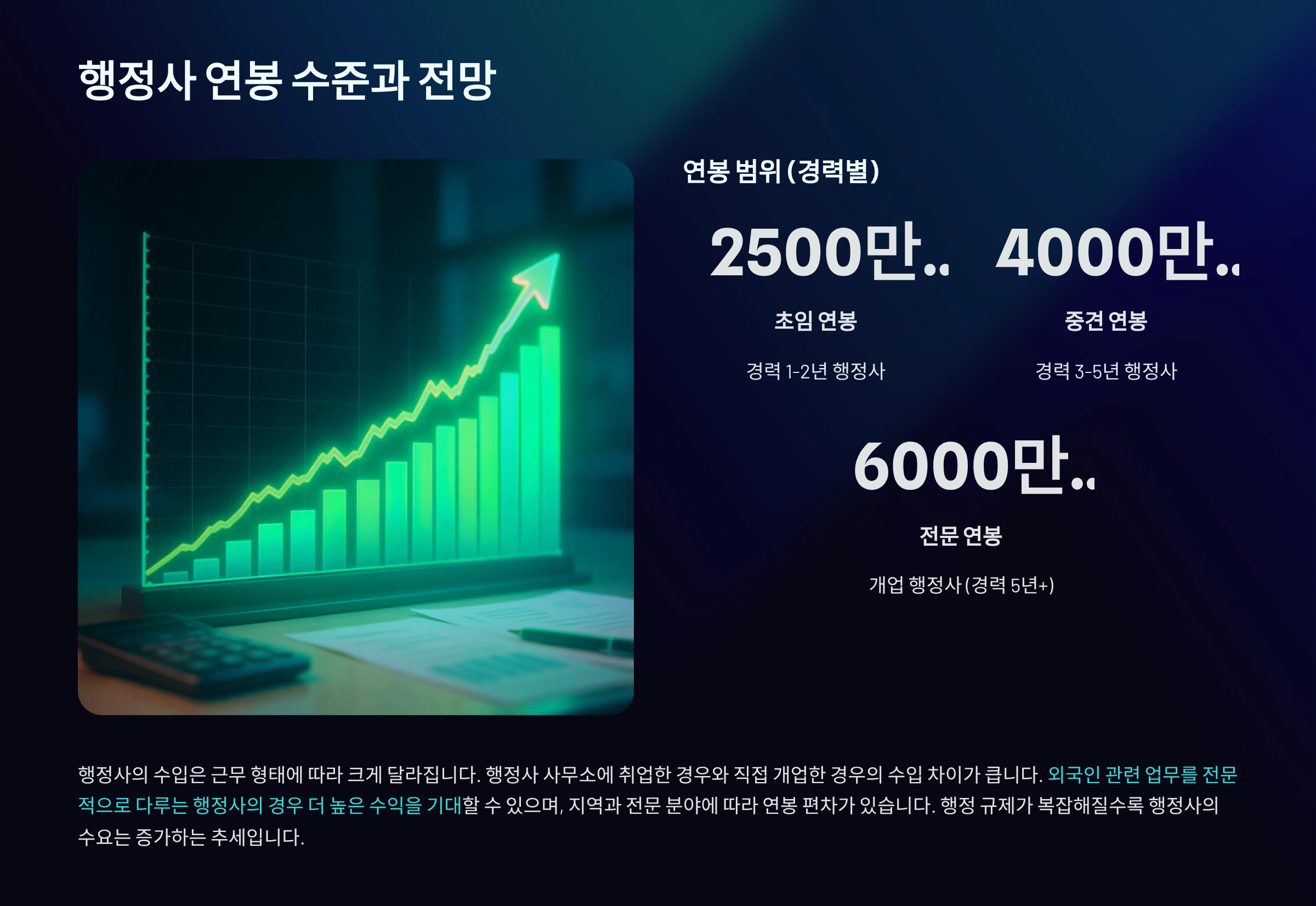 행정사의 연봉은 단순히 숫자로 평가하기보다는 본인의 전문성과 시장 내 입지를 어떻게 구축하느냐에 달려 있다고 볼 수 있어요. 예를 들어, 초기에 3천만 원대에서 출발하더라도 3~5년 후에는 억대 수익을 기대할 수 있는 직업이라는 점에서 미래 가능성이 크다고 할 수 있어요.
