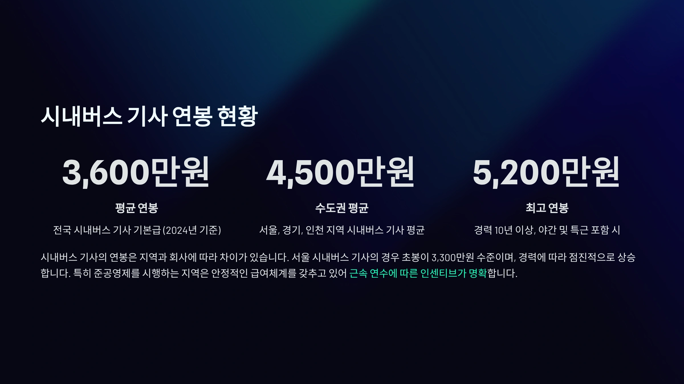 이 표에서 보듯 수도권과 지방의 연봉 격차가 크고, 근무 강도와 교대근무 여부가 실질 소득에 직접적인 영향을 주고 있어요. 버스 기사라는 직업을 고려한다면 단순히 평균 연봉만 볼 게 아니라, 근무 여건과 생활 패턴까지 함께 따져봐야 한다는 걸 알 수 있답니다. 📊