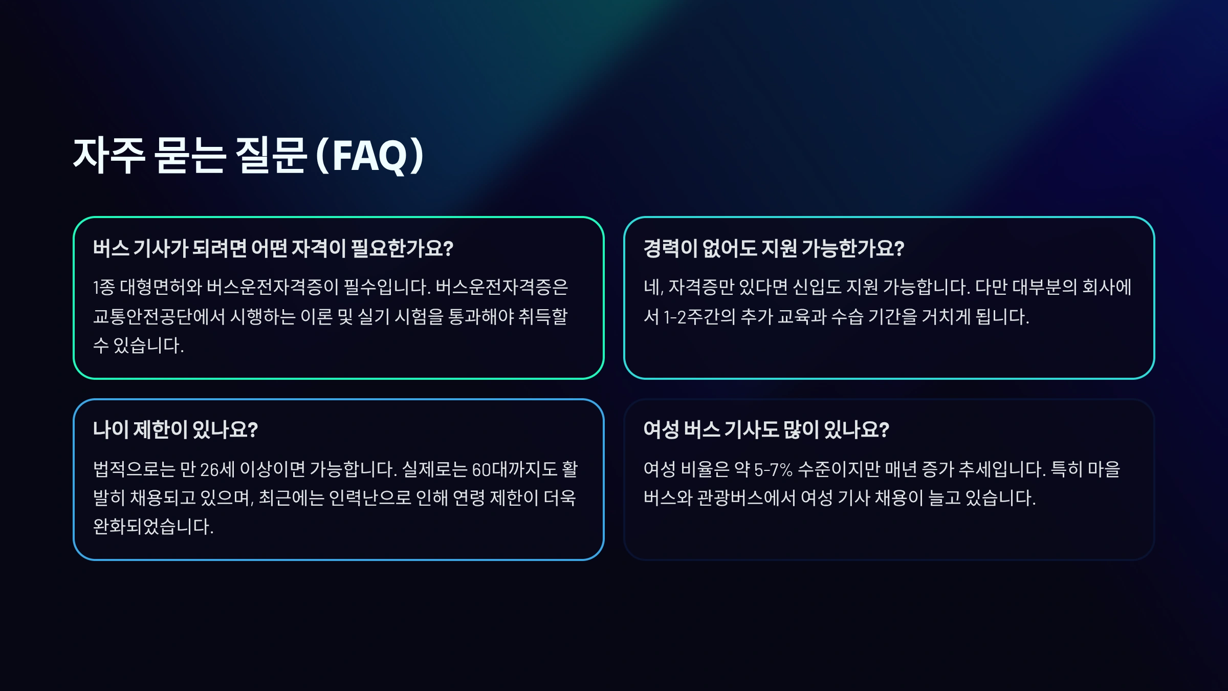 시내버스·마을버스 운전기사 연봉과 근무 조건 : 자주 묻는 질문 FAQ ❓